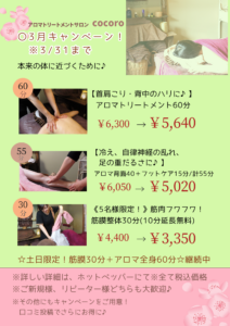 ◎アロマ背面40分 +フットケア15分計55分 ¥6,050→¥5,020